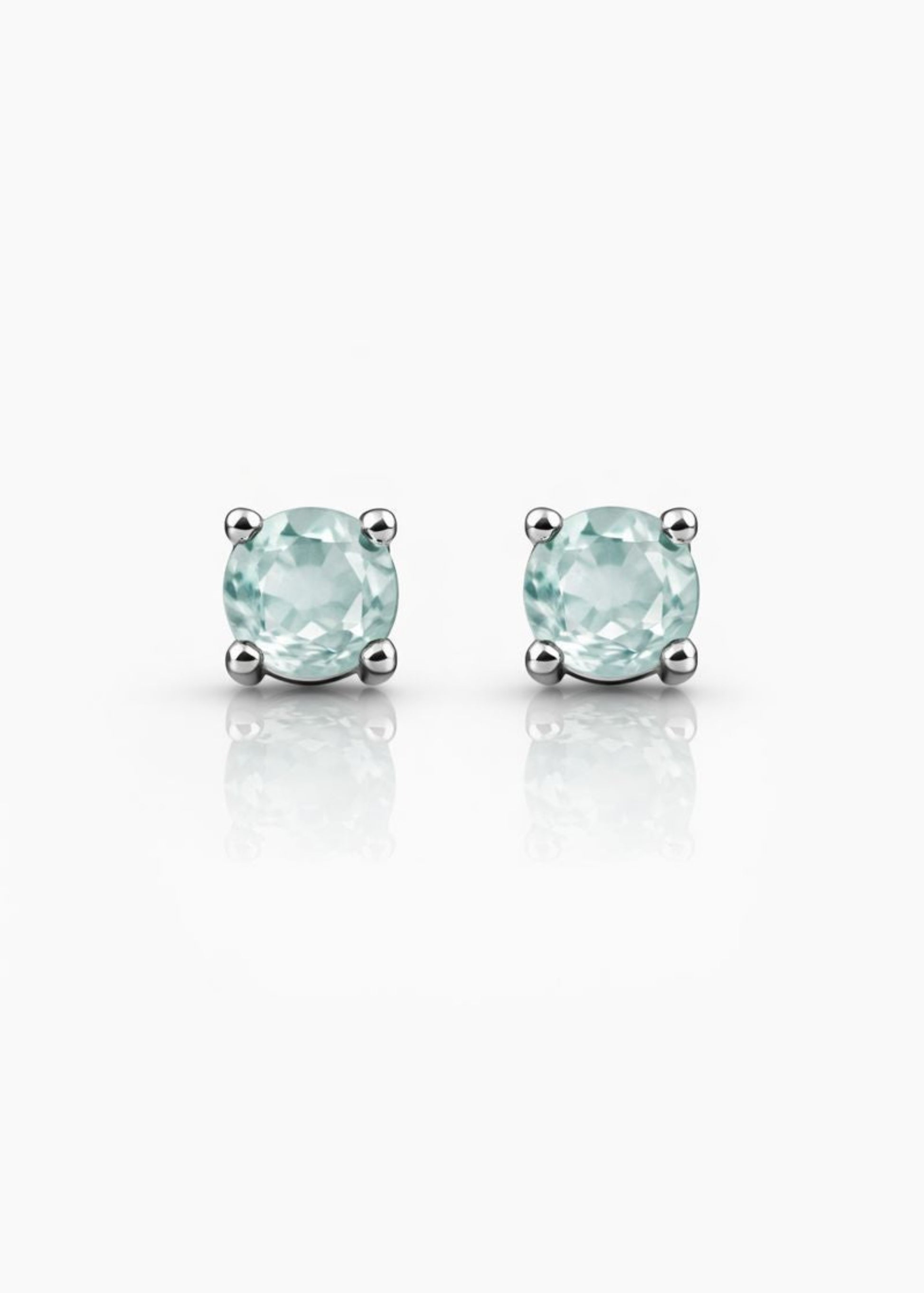 The AquaDot Solitaire Studs are inspired by the clarity of morning dew resting on cool stone — fresh, luminous, and effortlessly pure. The soft aqua gemstone captures light with gentle brilliance, offering a sense of calm elegance and understated luxury. Designed for everyday refinement, these studs embody simplicity, balance, and timeless grace.