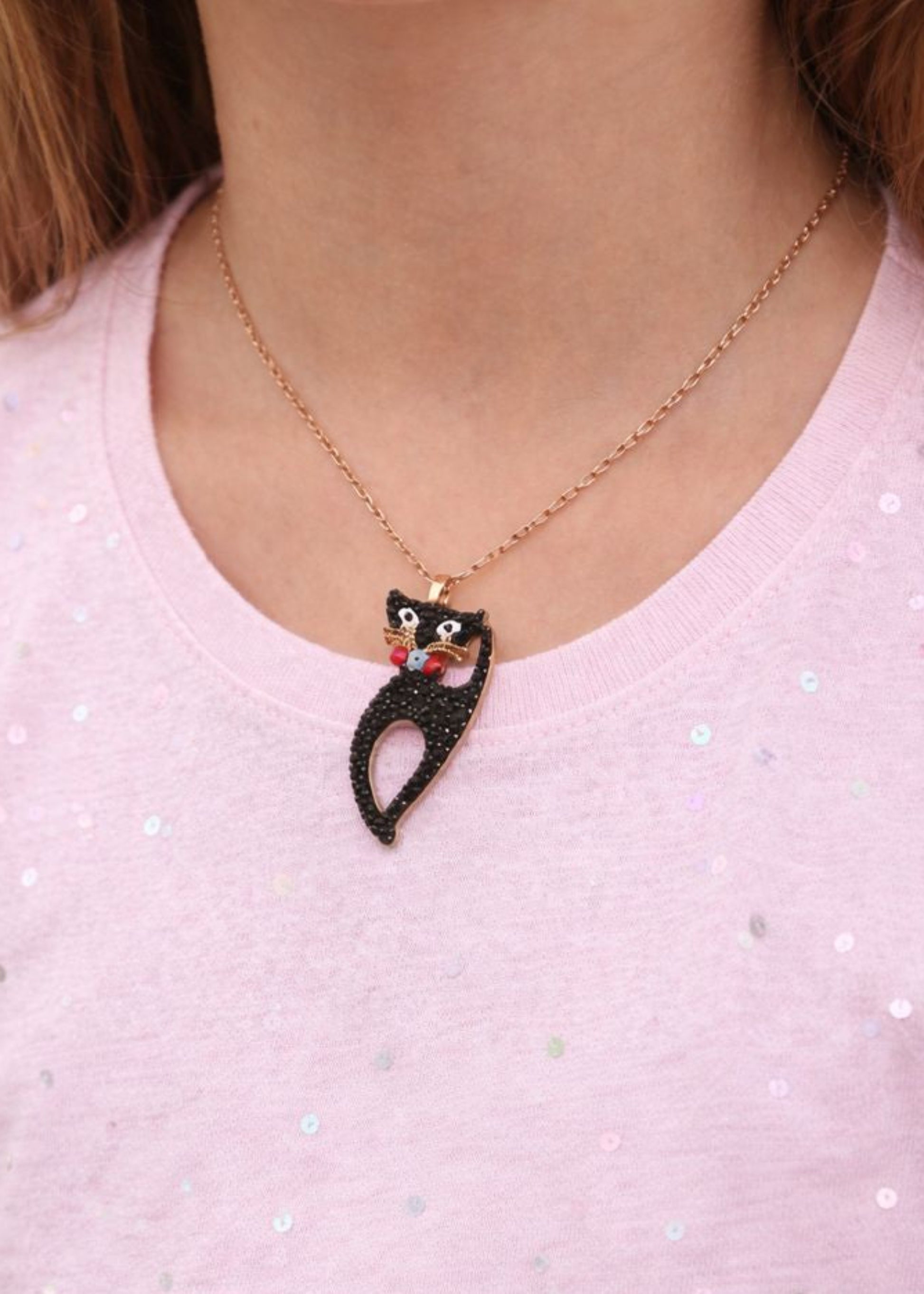 This cat pendant necklace looks charming with casual dresses and tops. Pair it with simple stud earrings or stack it with other delicate necklaces for a playful, layered look.
