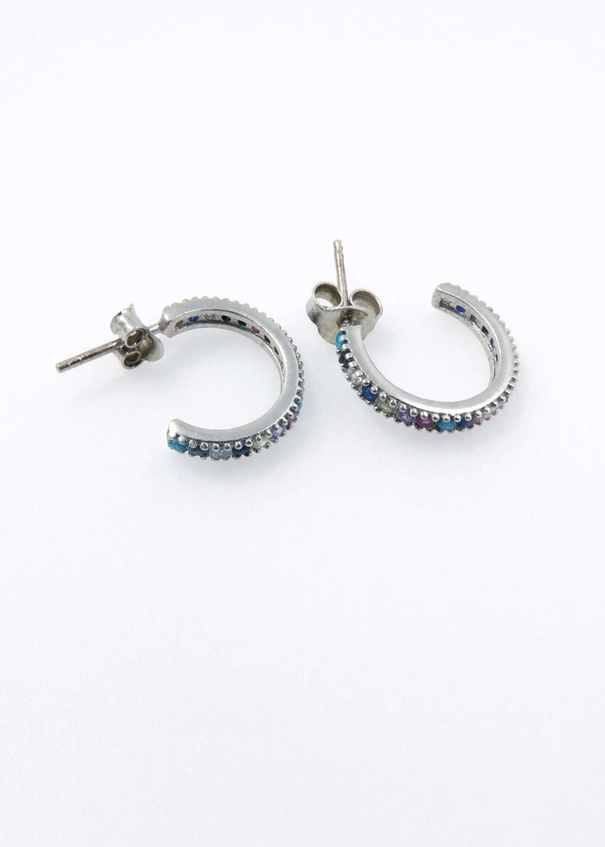 • Elegant mini hoop silhouette with full multicolor pavé surface