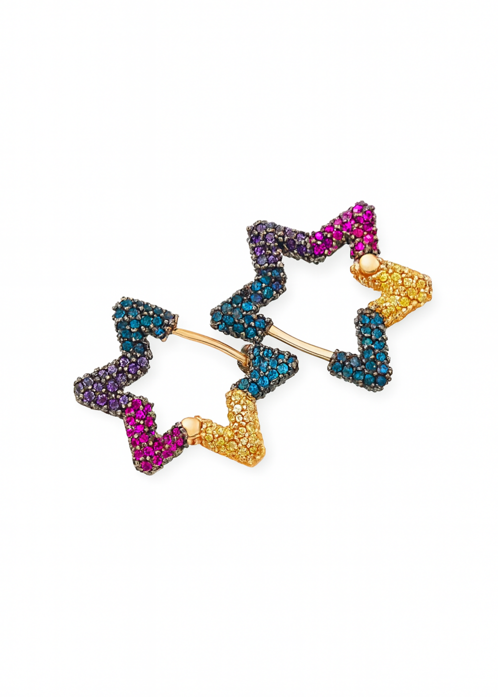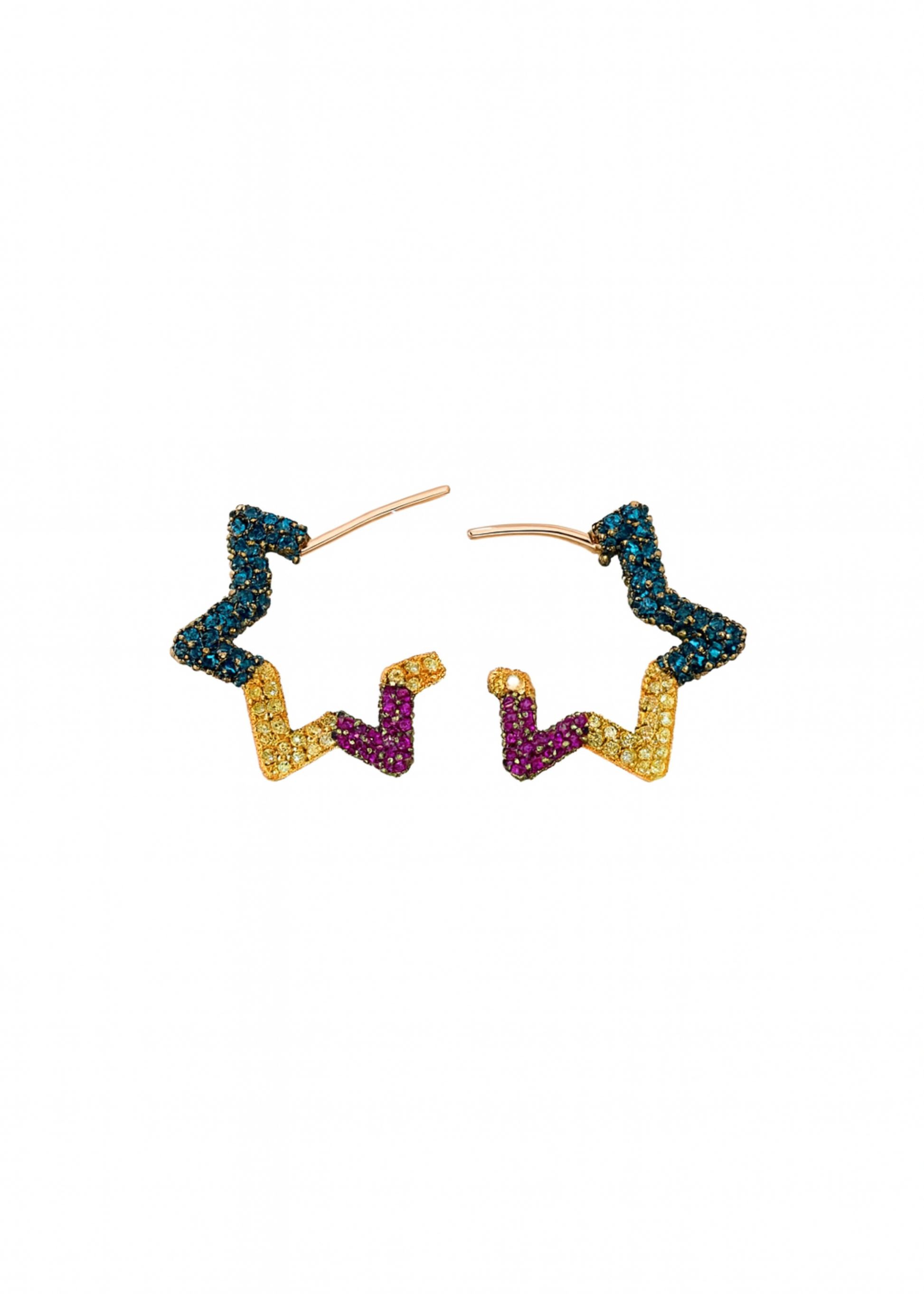 These hoops are where cosmic charm meets pop art. Designed in a playful star silhouette and drenched in candy-bright stones, the Celestial Pop Hoops embody bold self-expression and fearless joy.
