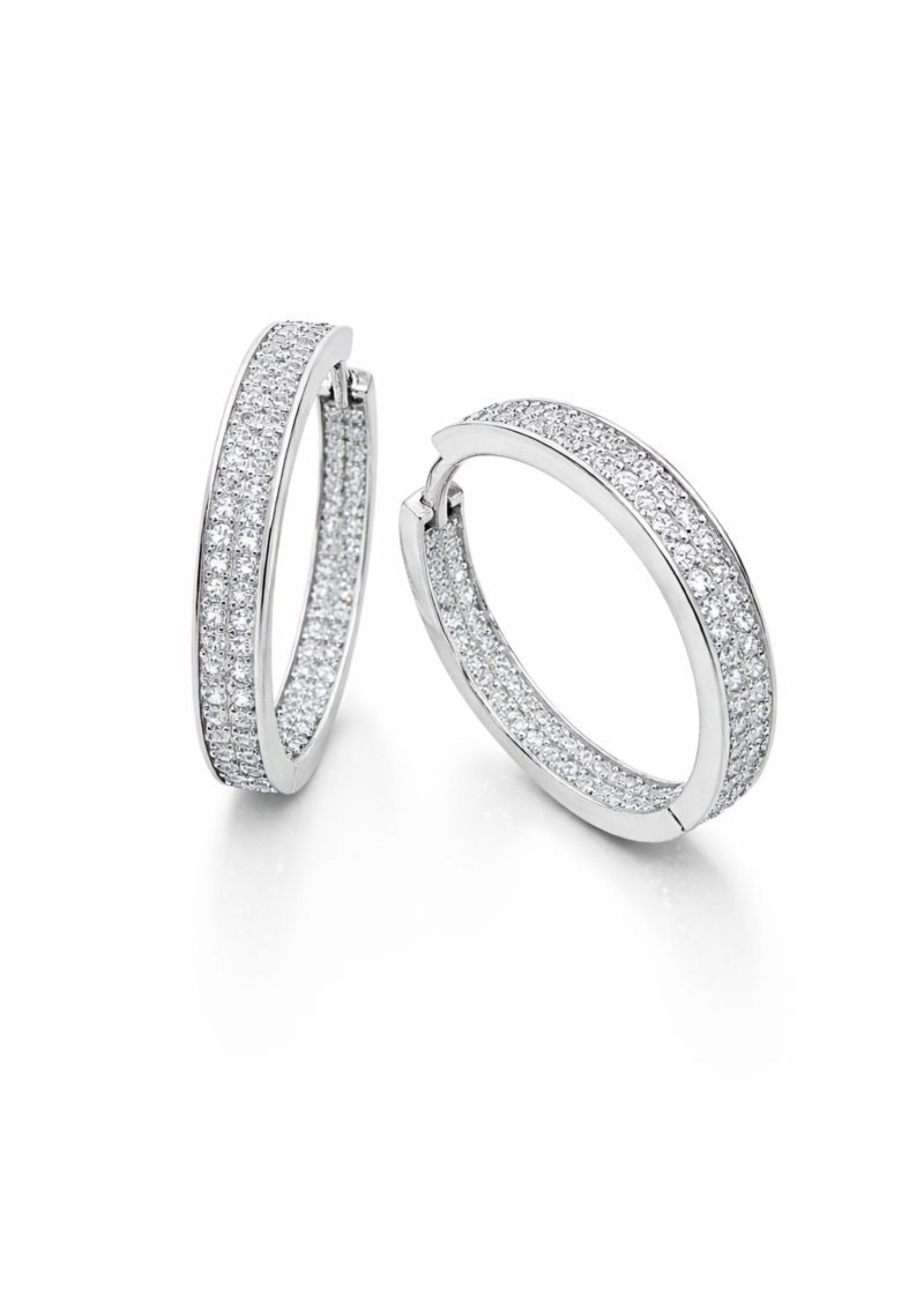 · Gracefully contoured hoop earrings adorned with finely set pavé stones