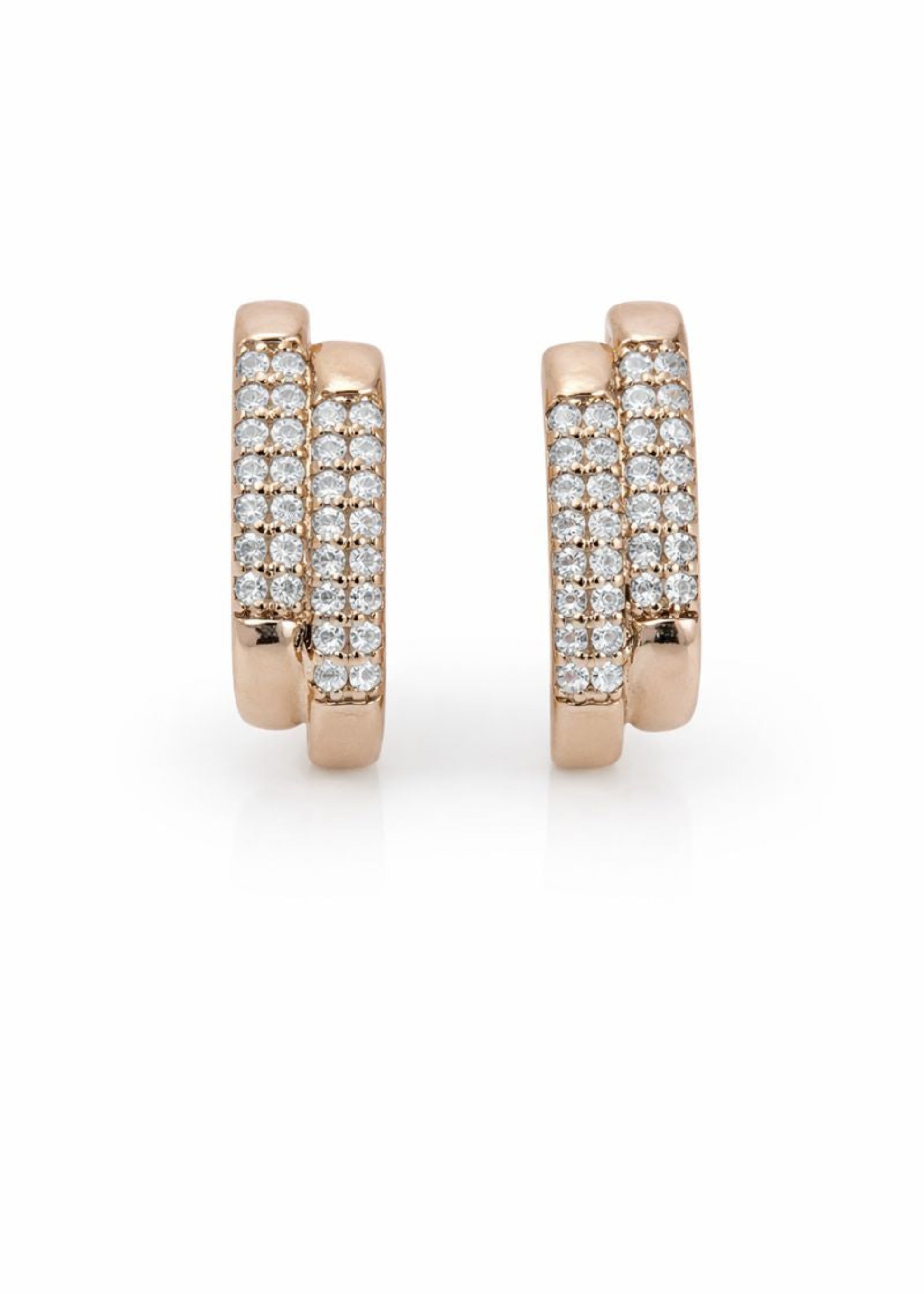 • Dual-layer hoop design with structured grid-like brilliance
