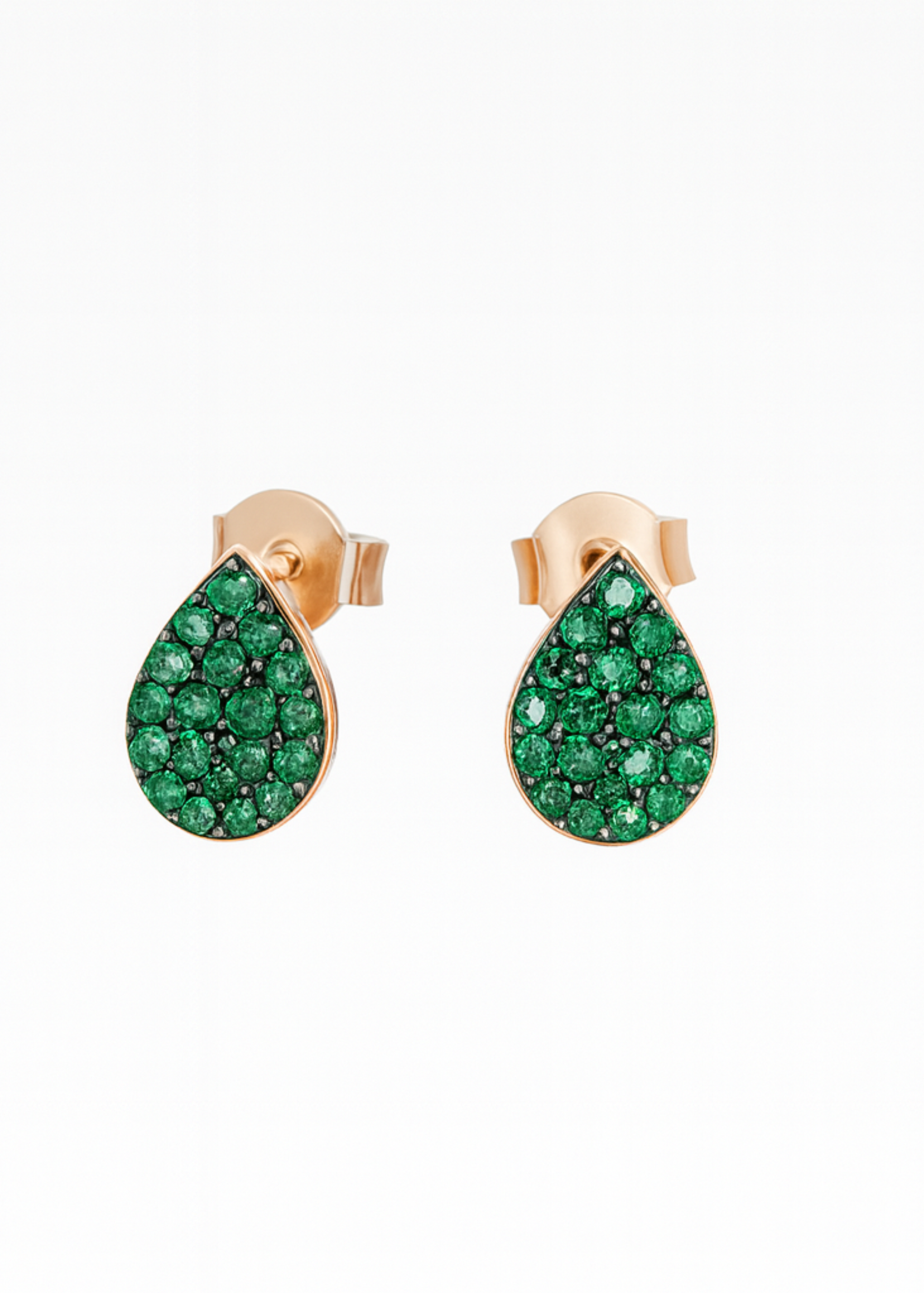 Elegant and minimal, the Emerald Drop Stud Earrings capture timeless charm in a petite design. Handcrafted from authentic 925 Sterling Silver with a warm rose gold finish, each earring is adorned with brilliant green cubic zirconia, creating a perfect pop of color for any outfit.