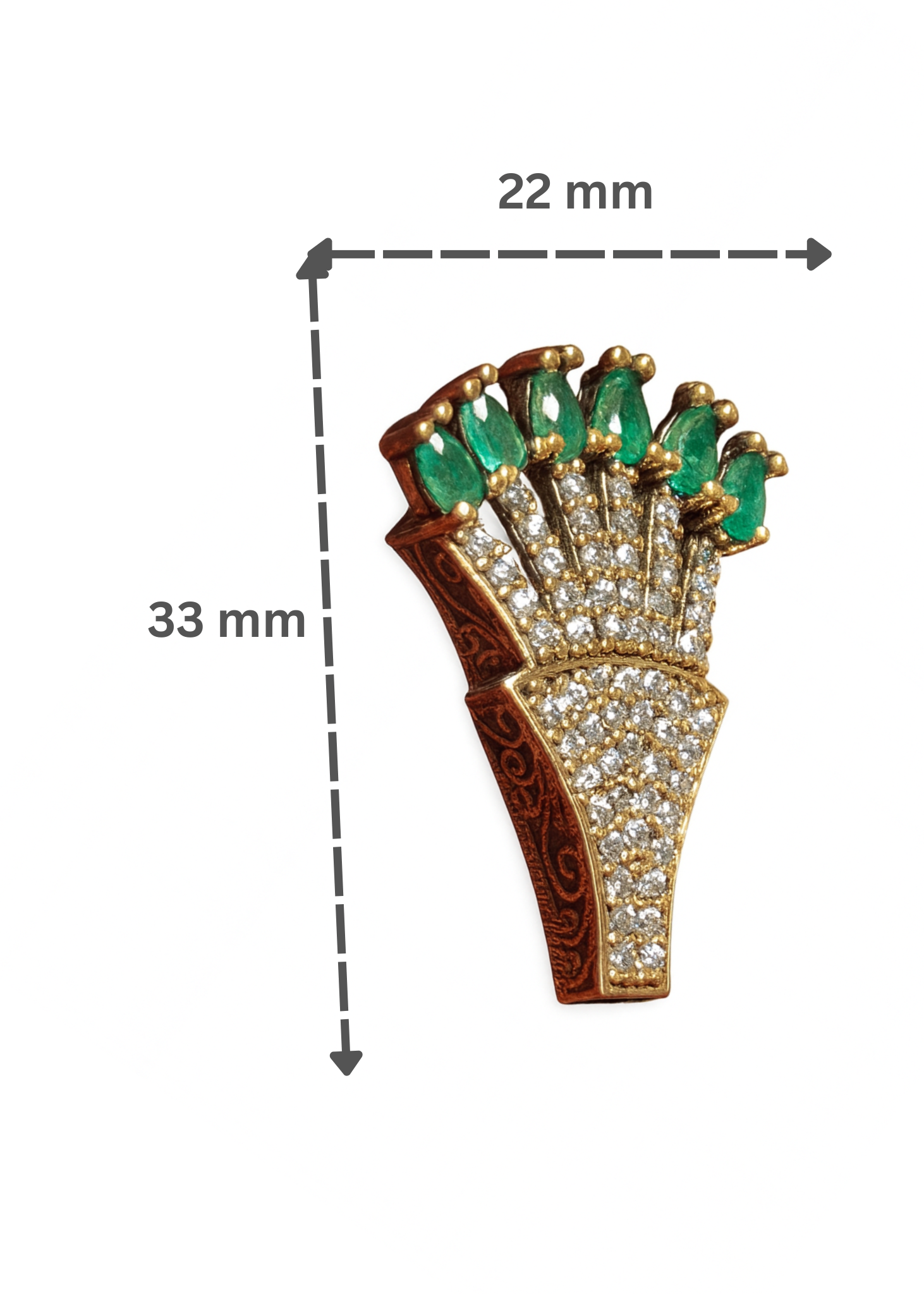 Pin it on a silk saree pallu, velvet shawl, or lapel for a touch of old-world glamour. Pair with pearl or emerald earrings for a refined heritage look.