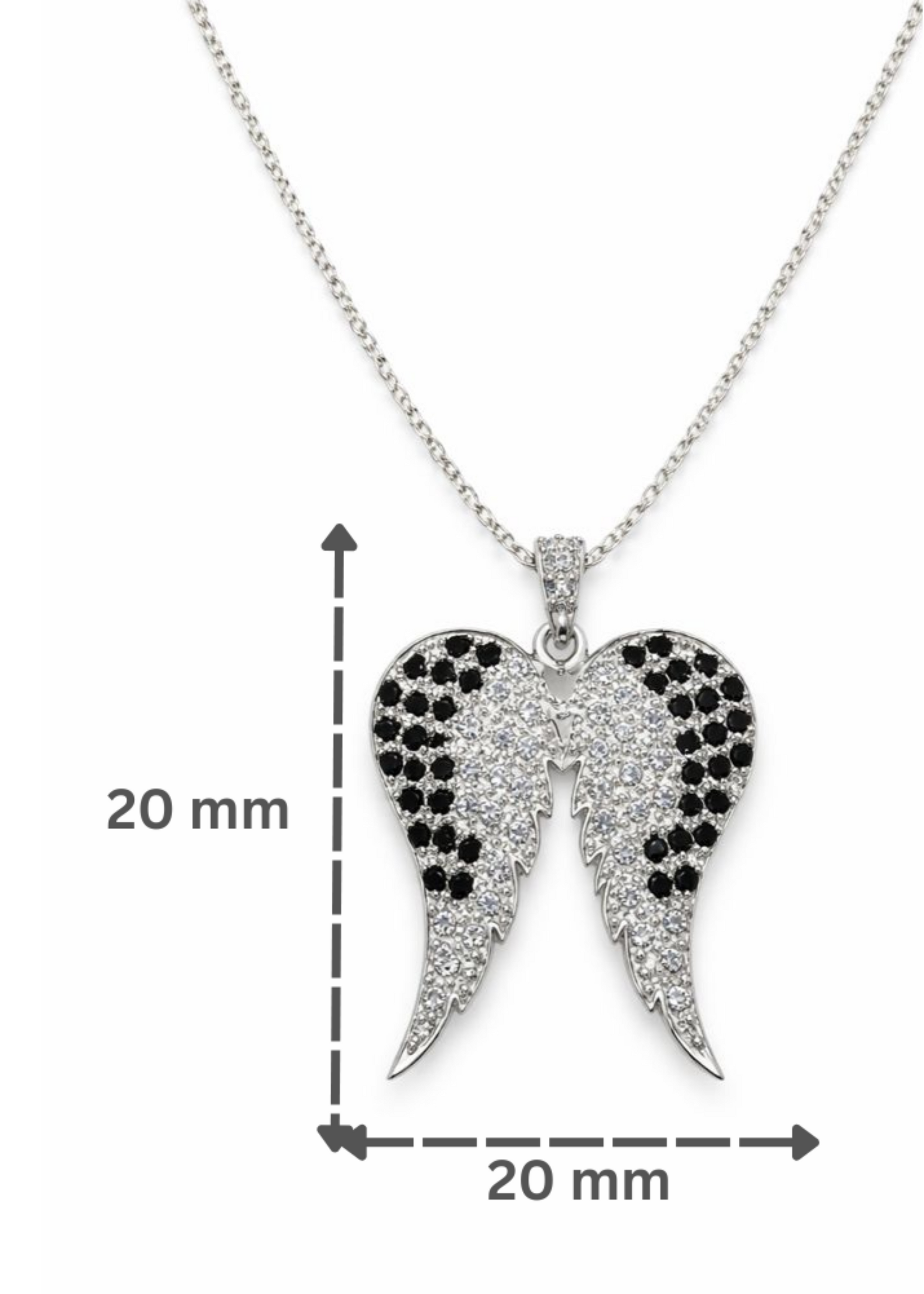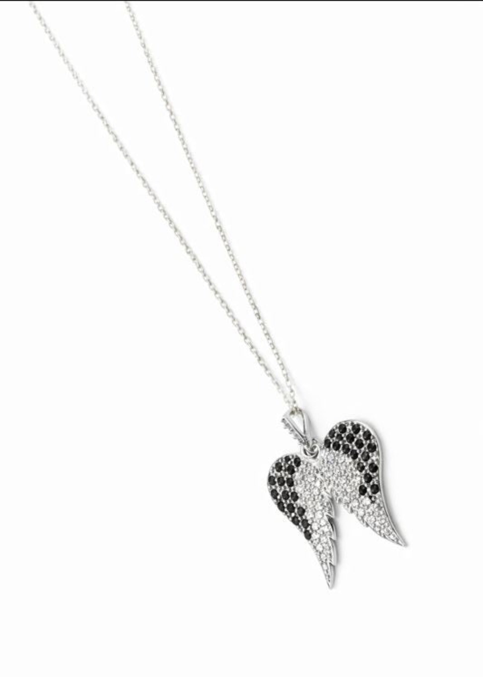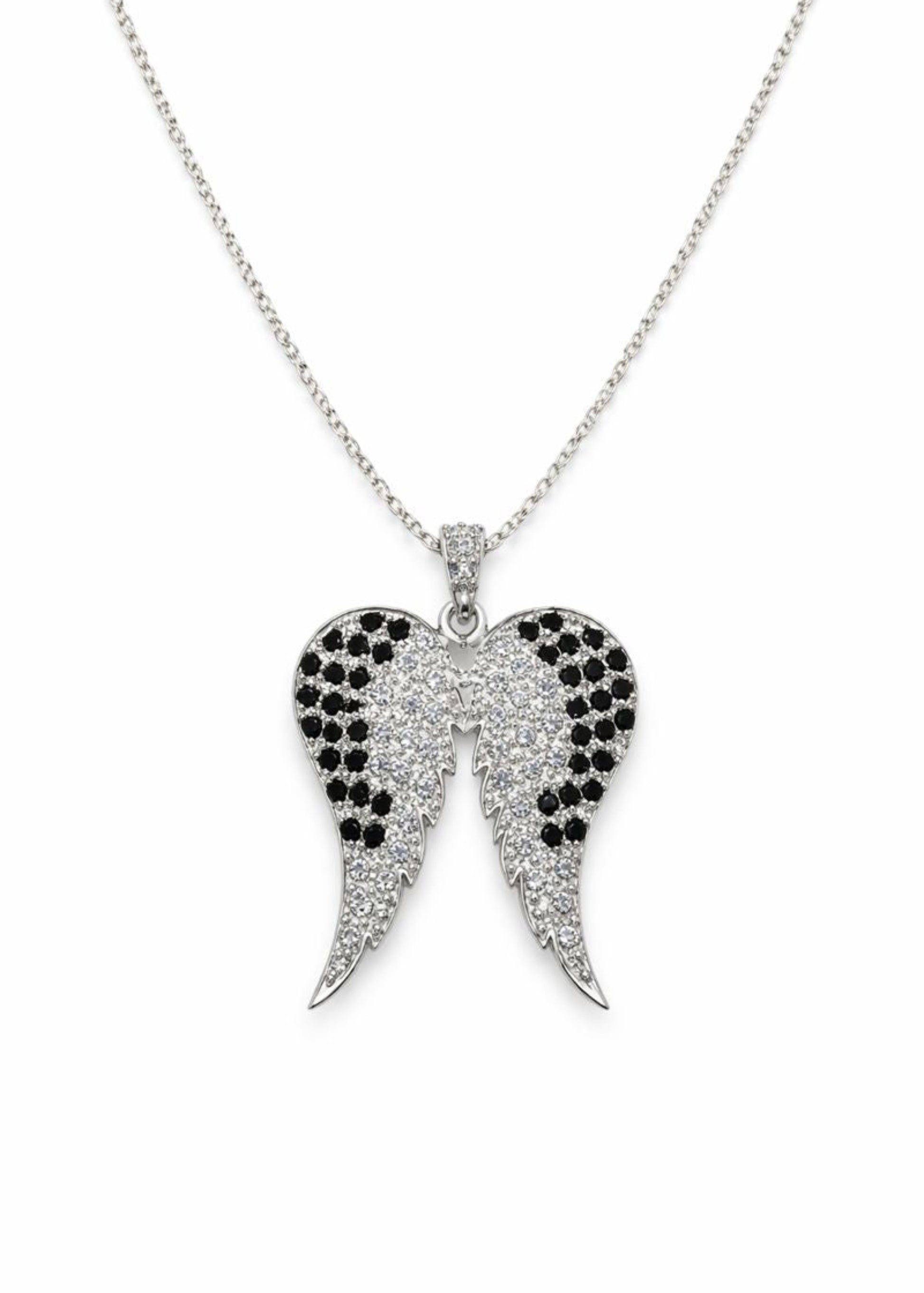 The Eternal Wings Necklace symbolizes freedom, protection, and inner strength. Designed with a modern monochrome twist, these crystal-studded angel wings blend celestial beauty with bold contemporary style.
