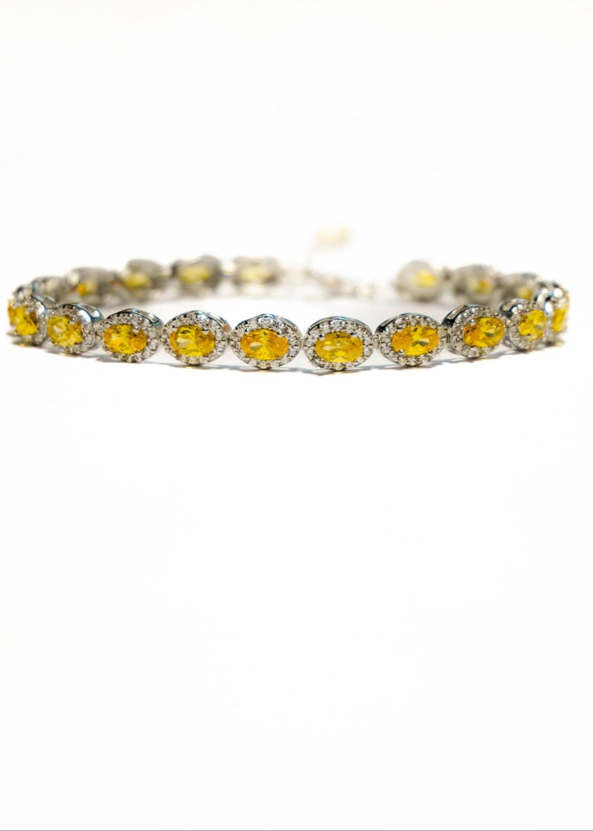 Radiating sunshine and optimism, the Golden Glow Bracelet is inspired by the brilliance of summer mornings and the warmth of pure joy. Each yellow zircon symbolizes energy, happiness, and grace — a perfect reflection of the woman who brightens every room she walks into.