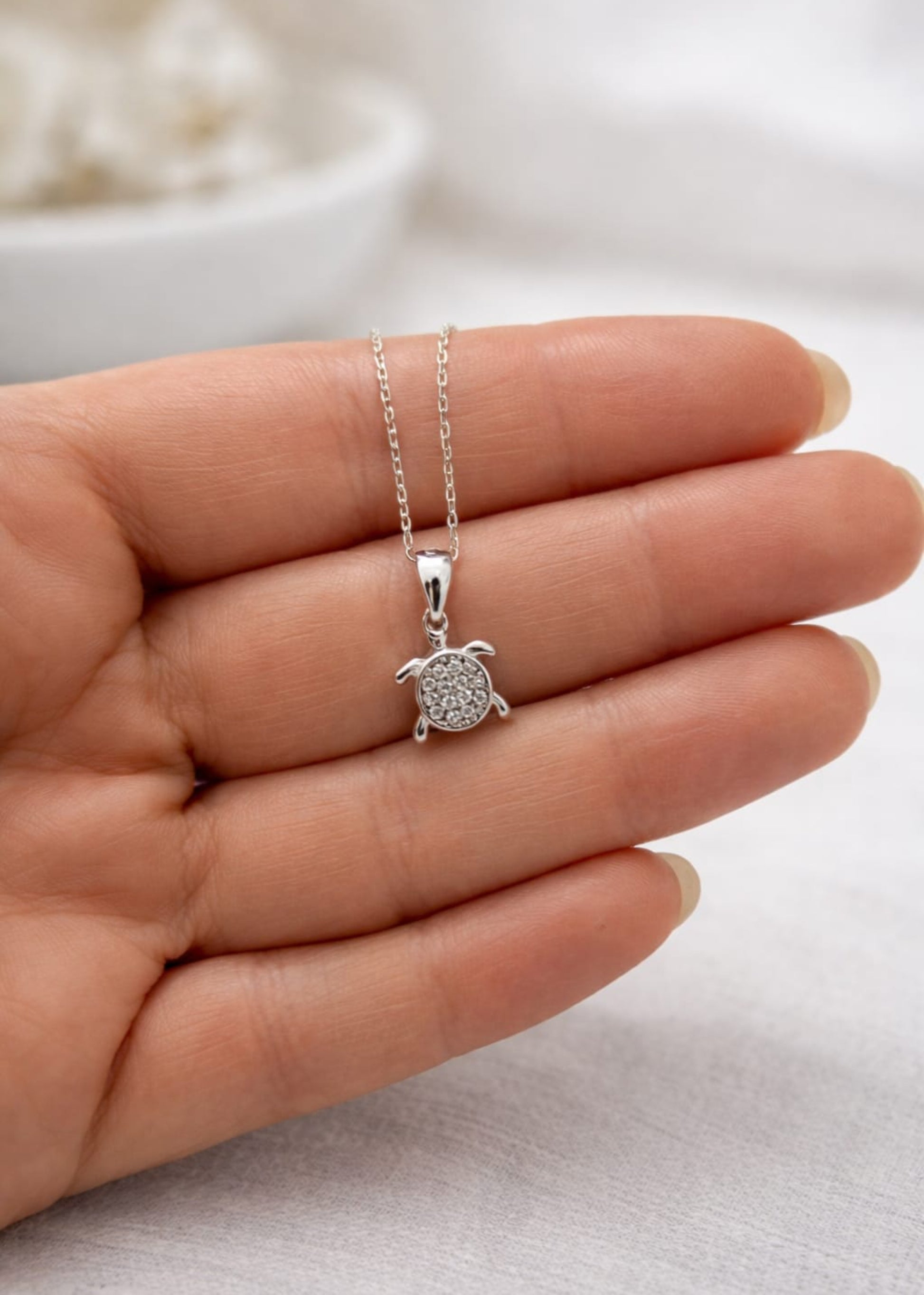 A symbol of protection, longevity, and gentle strength, this turtle necklace is designed to celebrate innocence and care. Its delicate form and subtle sparkle make it a meaningful keepsake for everyday moments.
