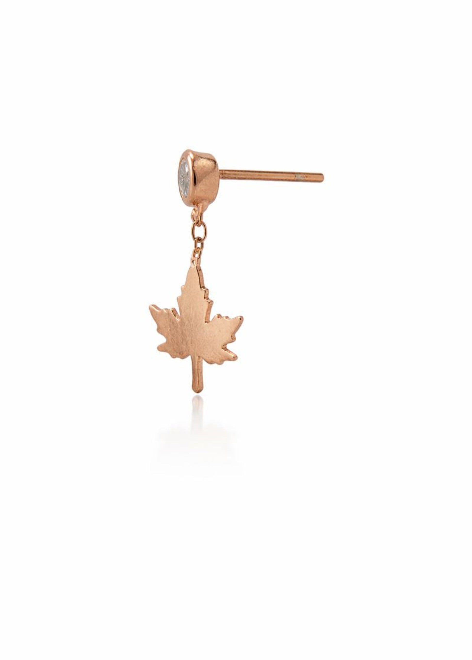 Inspired by the beauty of falling autumn leaves, these delicate drop earrings feature a minimalist maple leaf charm suspended from a sparkling stud. Subtle and elegant, they bring a touch of nature-inspired charm to everyday jewelry looks.