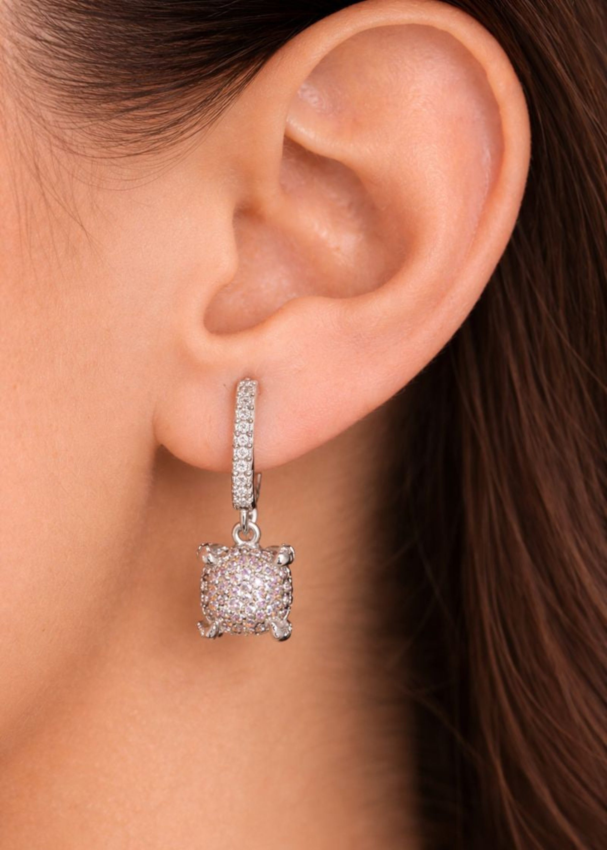 • Cushion-shaped drop silhouette with full pavé detailing