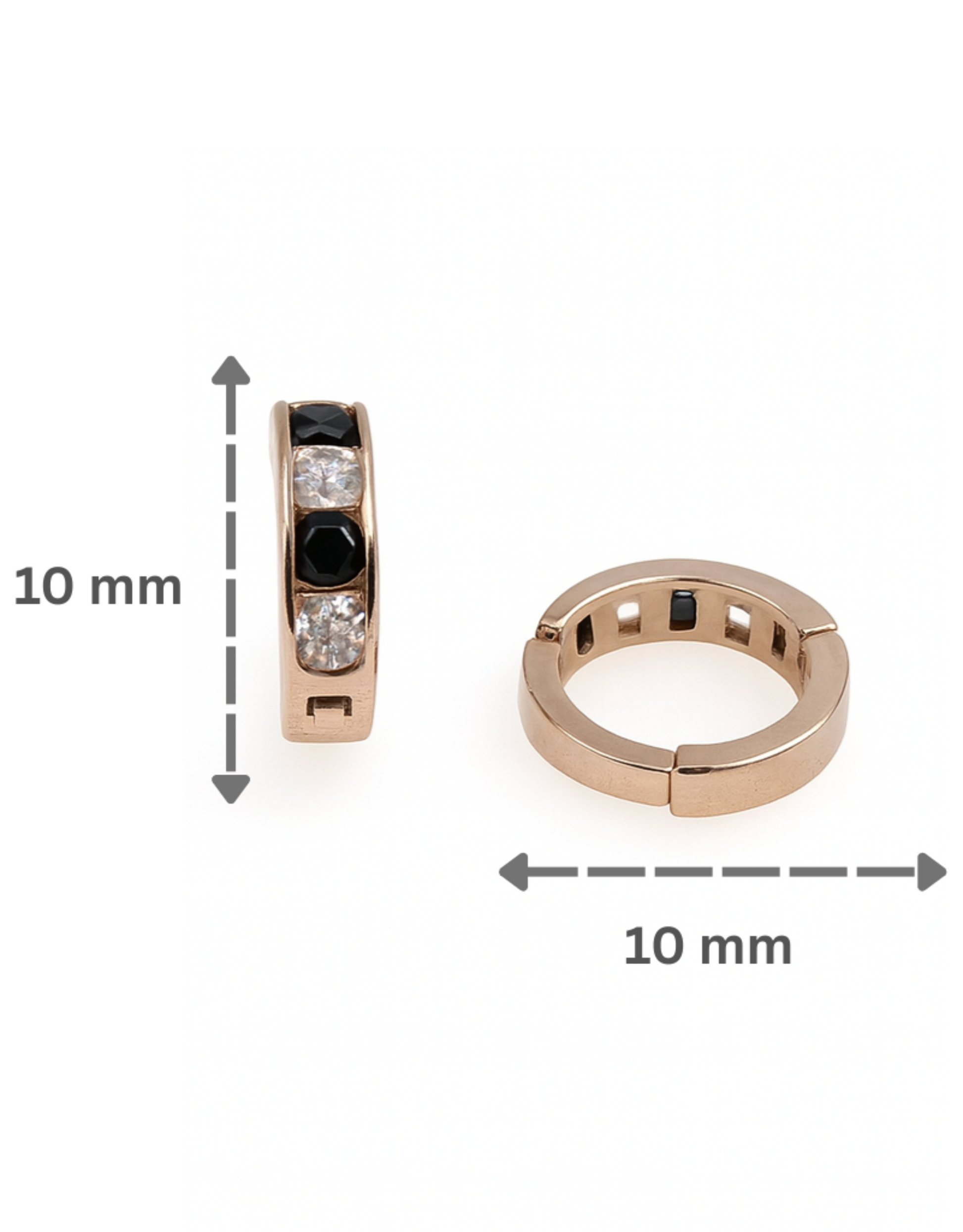The Lumière Mini Huggies are inspired by the contrast of shadow and light — a balance that embodies elegance, confidence, and modern refinement. Alternating black and white stones create a bold yet timeless visual rhythm, making these huggies a subtle statement of sophistication and individuality.