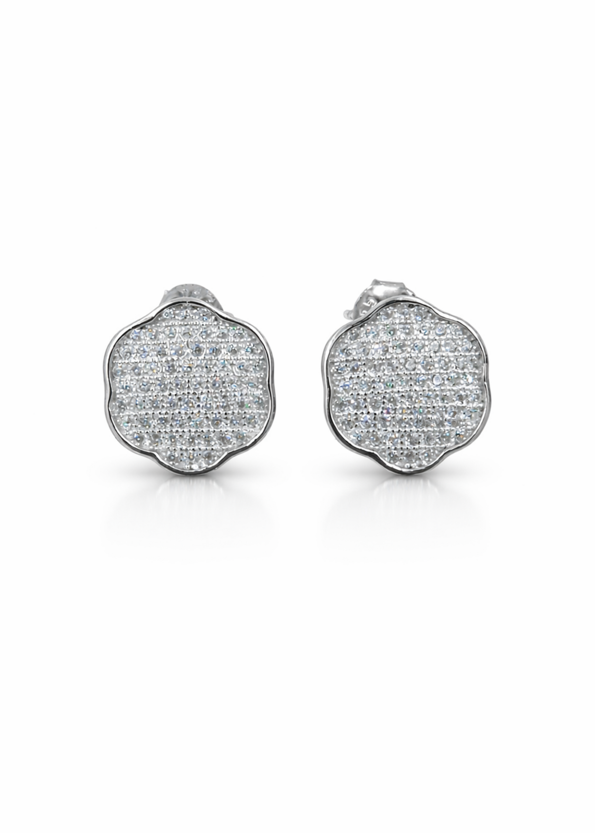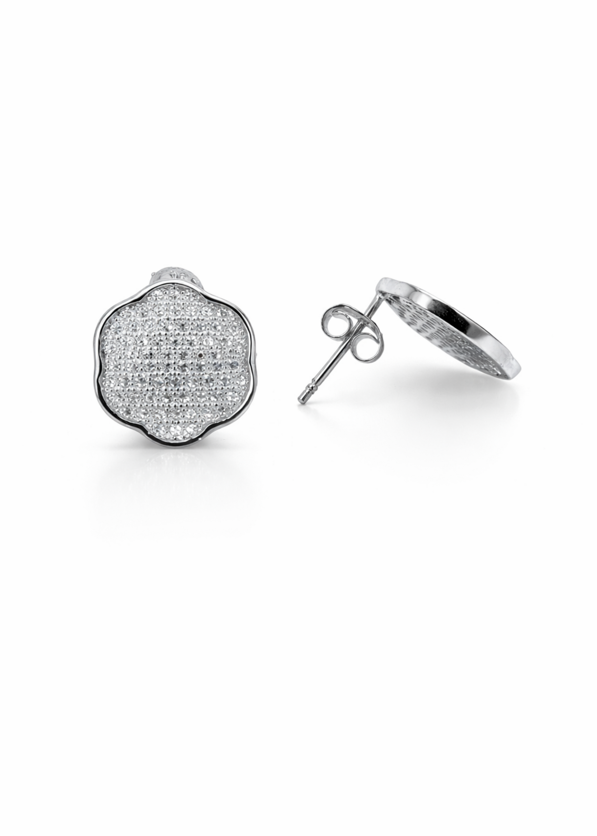 The Luna Sparkle Pavé Stud Earrings are inspired by soft moonlight and timeless elegance. Their delicate scalloped silhouette combined with shimmering pavé stones creates a refined sparkle that elevates any look.