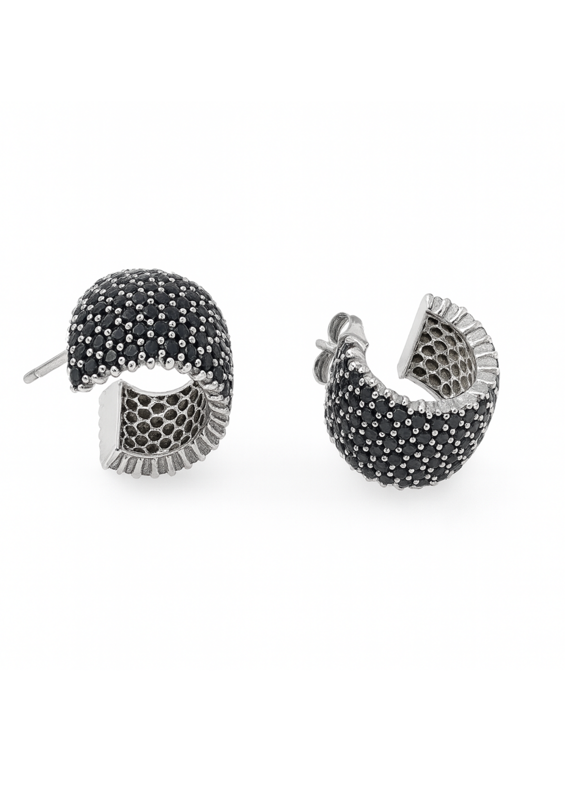 • Bold wide-band hoop silhouette with full black pavé detailing