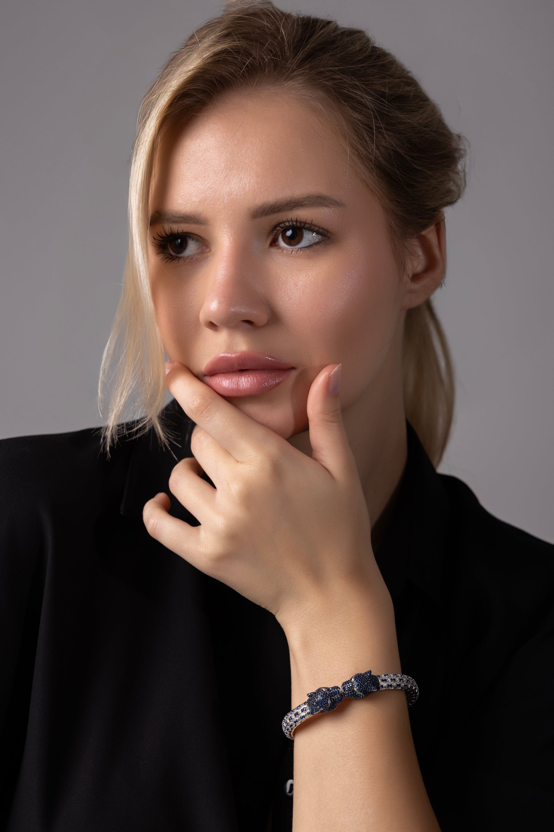 Inspired by the fierce yet graceful panther, the Midnight Panther Bracelet embodies strength, elegance, and mystery. With its piercing green eyes and sapphire-blue sparkle, this piece is designed for the woman who embraces power and sophistication in equal measure.