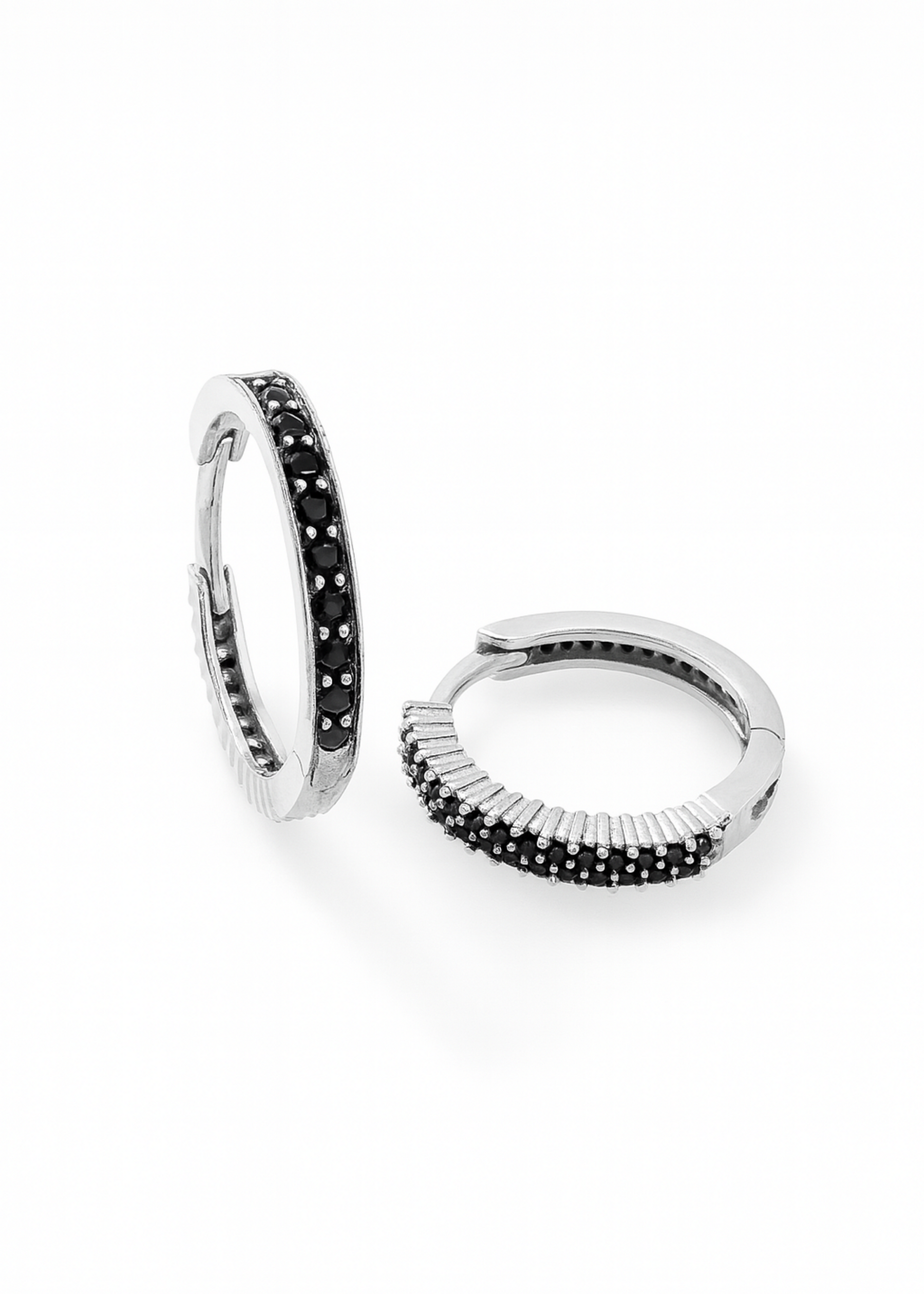 The Noir Gear-Edge Mini Hoops draw inspiration from modern industrial artistry — where strength meets precision in every sculpted line. Designed for those who love bold texture in a minimal silhouette, the raised gear-edge contour symbolizes resilience, while the pavé-set black stones add a touch of mysterious elegance.