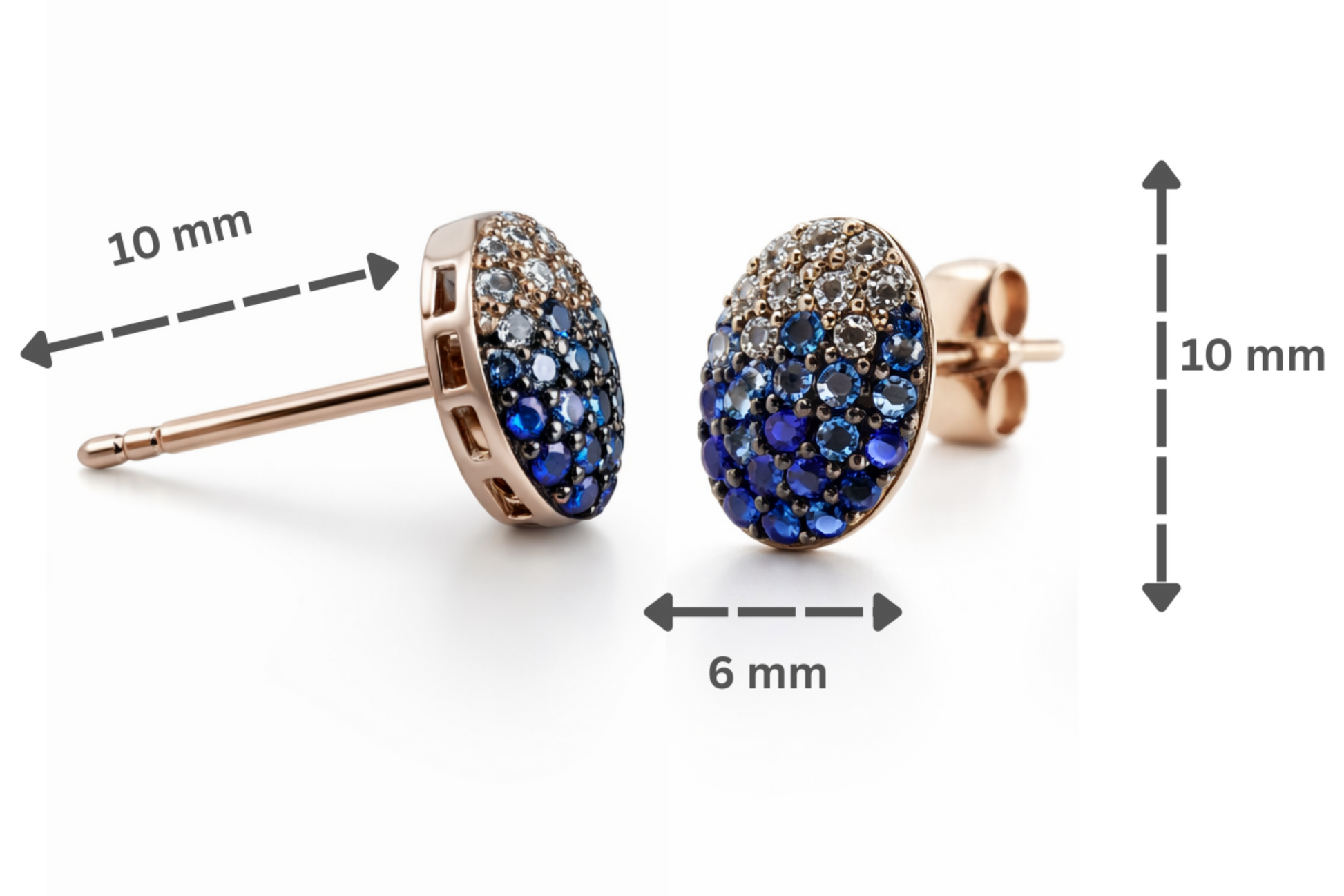 The Ocean Dome Studs are inspired by the serene beauty of twilight seas — where sapphire waters deepen into midnight tones and shimmer under fading light. The soft dome silhouette creates a radiant, multidimensional glow, while the gradient pavé stones evoke waves in motion, capturing elegance, calm, and modern sophistication.