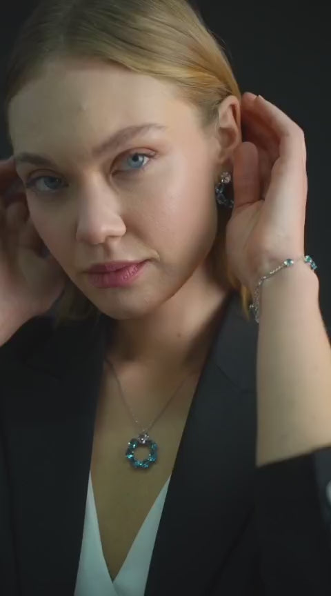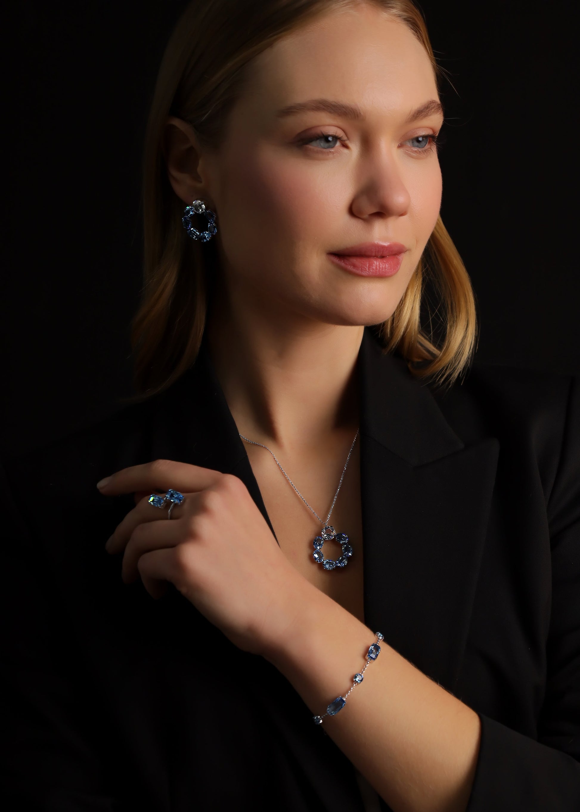 Inspired by the brilliance of ocean waves, this elegant bracelet features faceted blue Swarovski stones linked together for a refined yet radiant look. Delicate and graceful, it adds a touch of luxury sparkle to everyday and evening wear.