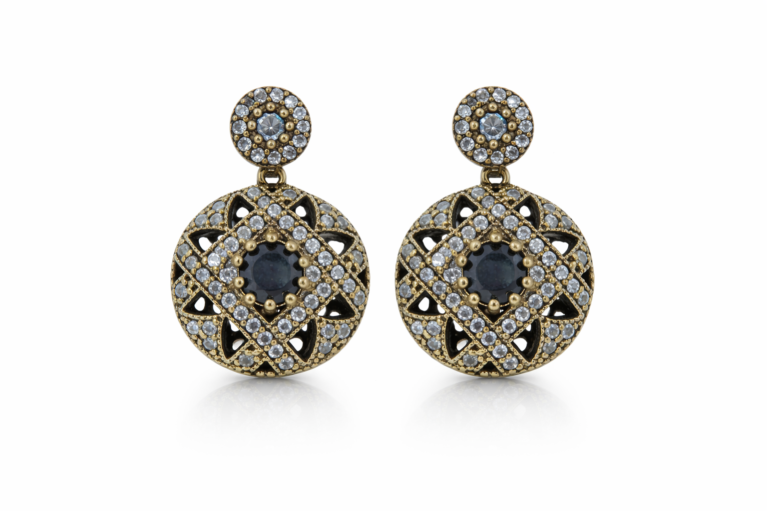 • Statement medallion silhouette with intricate geometric lattice detailing