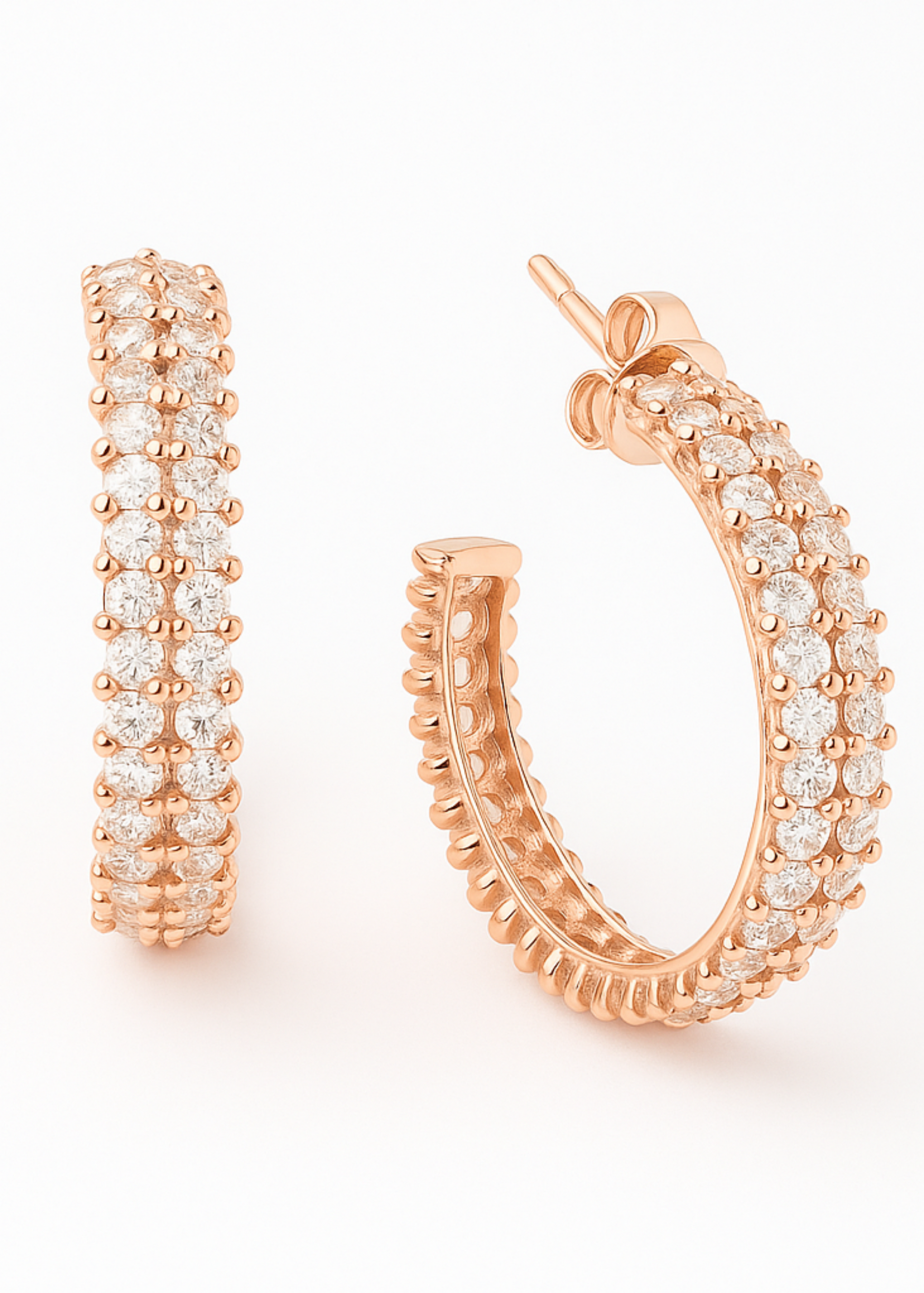 These hoops are a versatile statement — perfect for elevating both daytime and evening looks. Pair them with soft neutral outfits, silk tops, cocktail dresses, or stacked with minimalist studs for a modern, layered ear look. Their radiant sparkle makes them ideal for celebrations, special occasions, or polished daily wear.