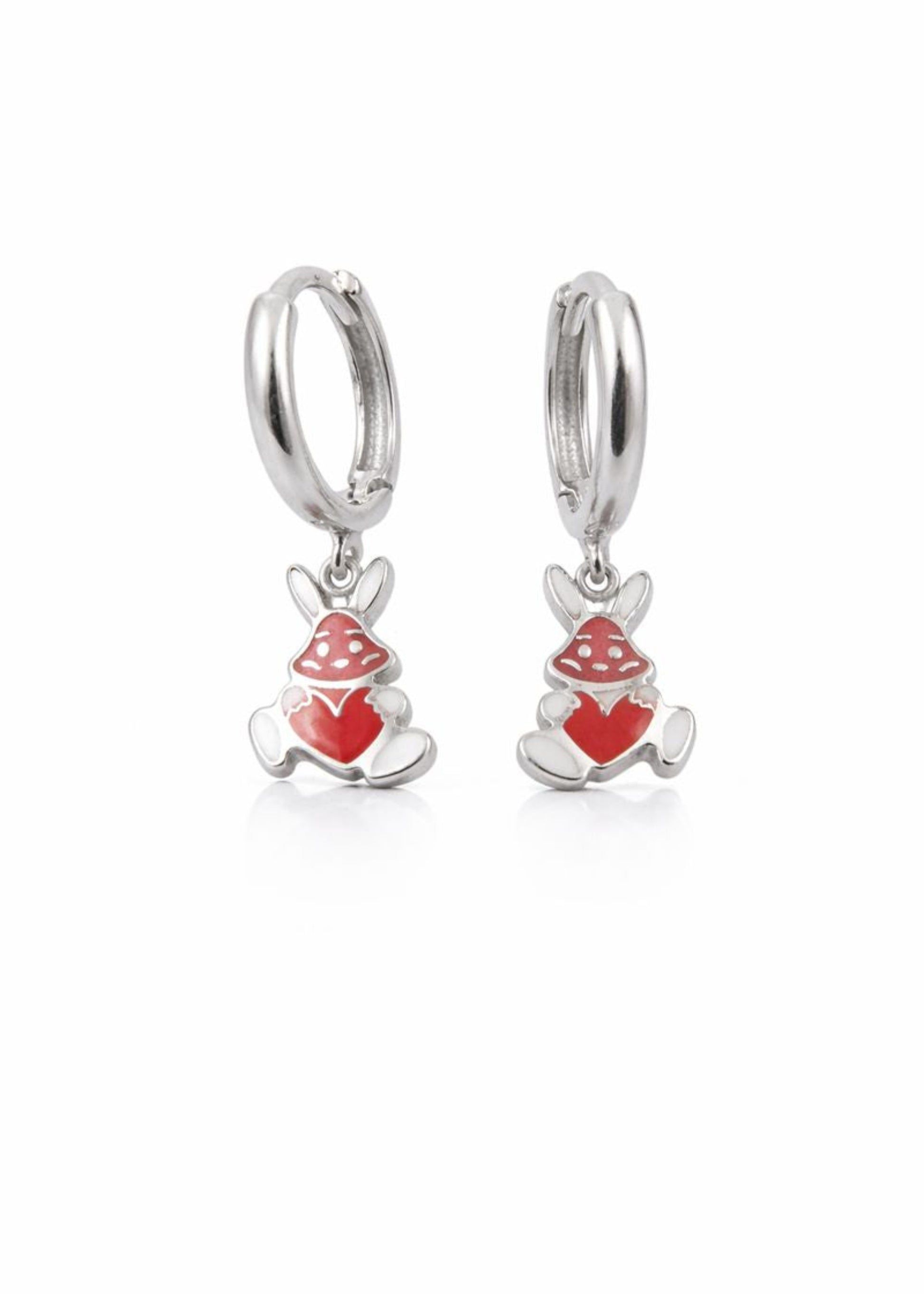Inspired by cute little bunnies and playful childhood charm, these delightful hoop drop earrings feature an adorable bunny motif with vibrant red enamel detailing. Symbolizing innocence, joy, and playfulness, these earrings add a fun and cheerful touch to kids’ everyday jewelry.