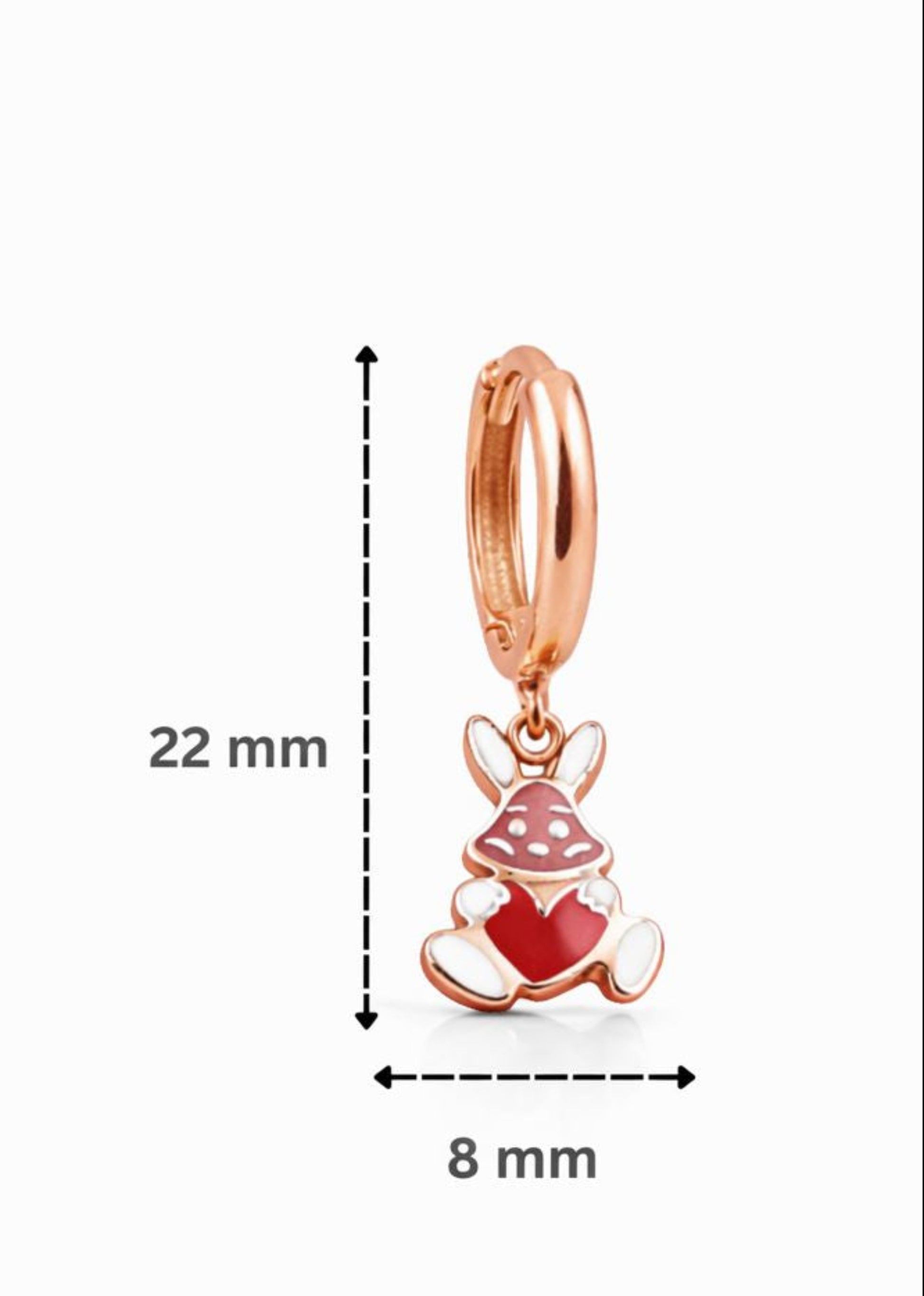 Inspired by adorable little bunnies and the warmth of childhood love, these charming hoop drop earrings feature a sweet bunny holding a heart. The playful red and white enamel detailing brings a joyful, storybook-like charm, making these earrings a delightful everyday accessory for kids.