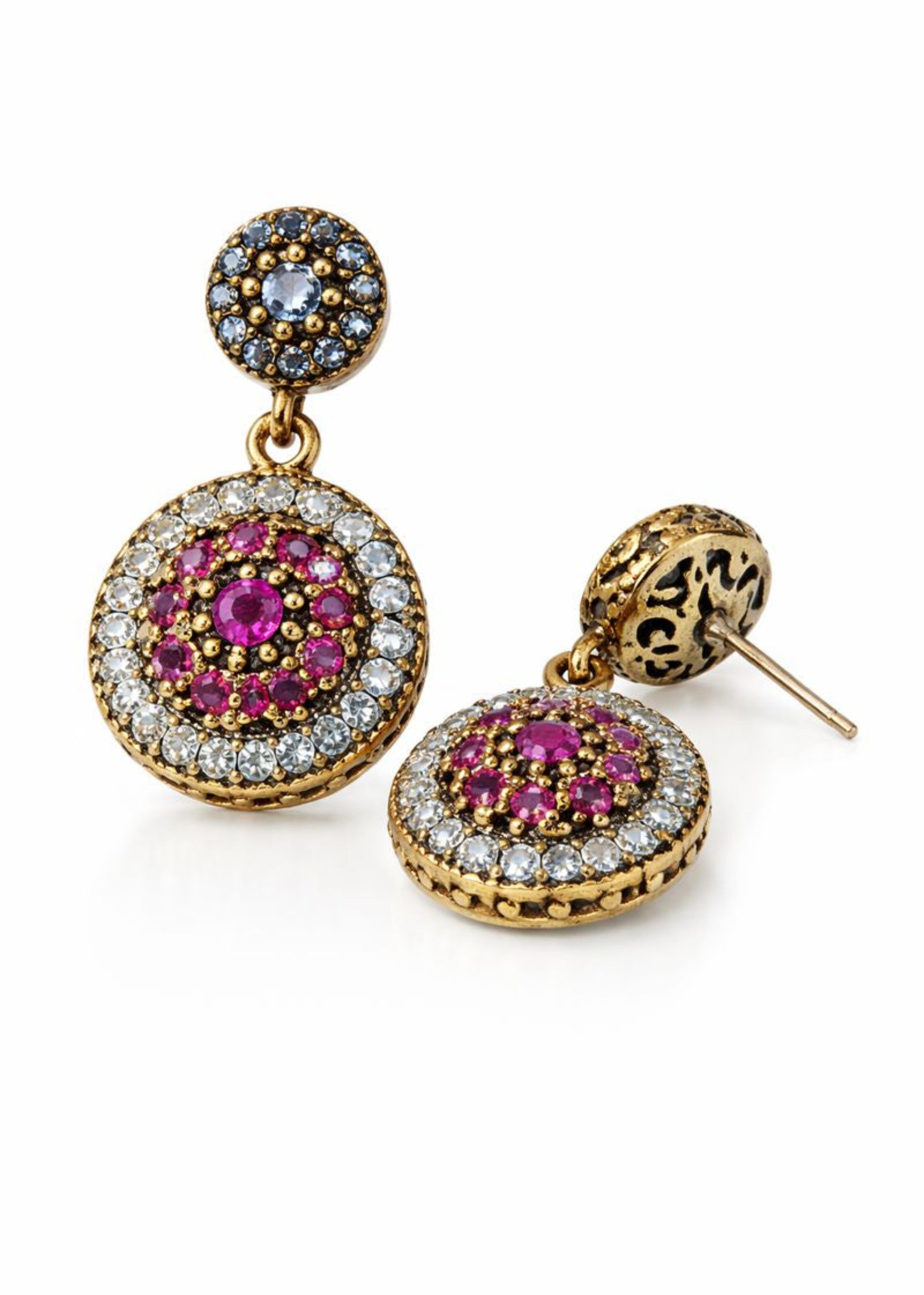 · Vintage-inspired round medallion design with intricate metalwork