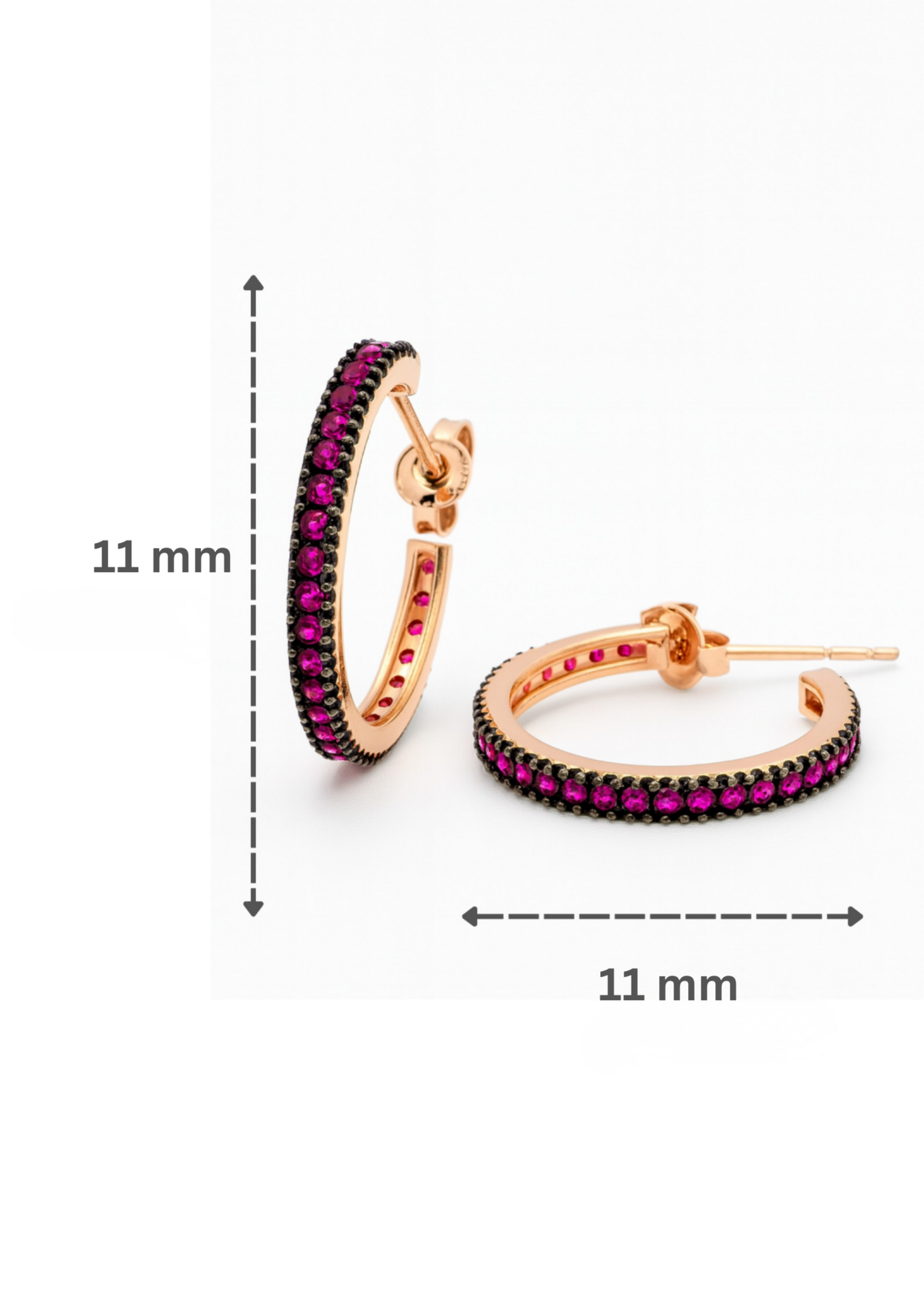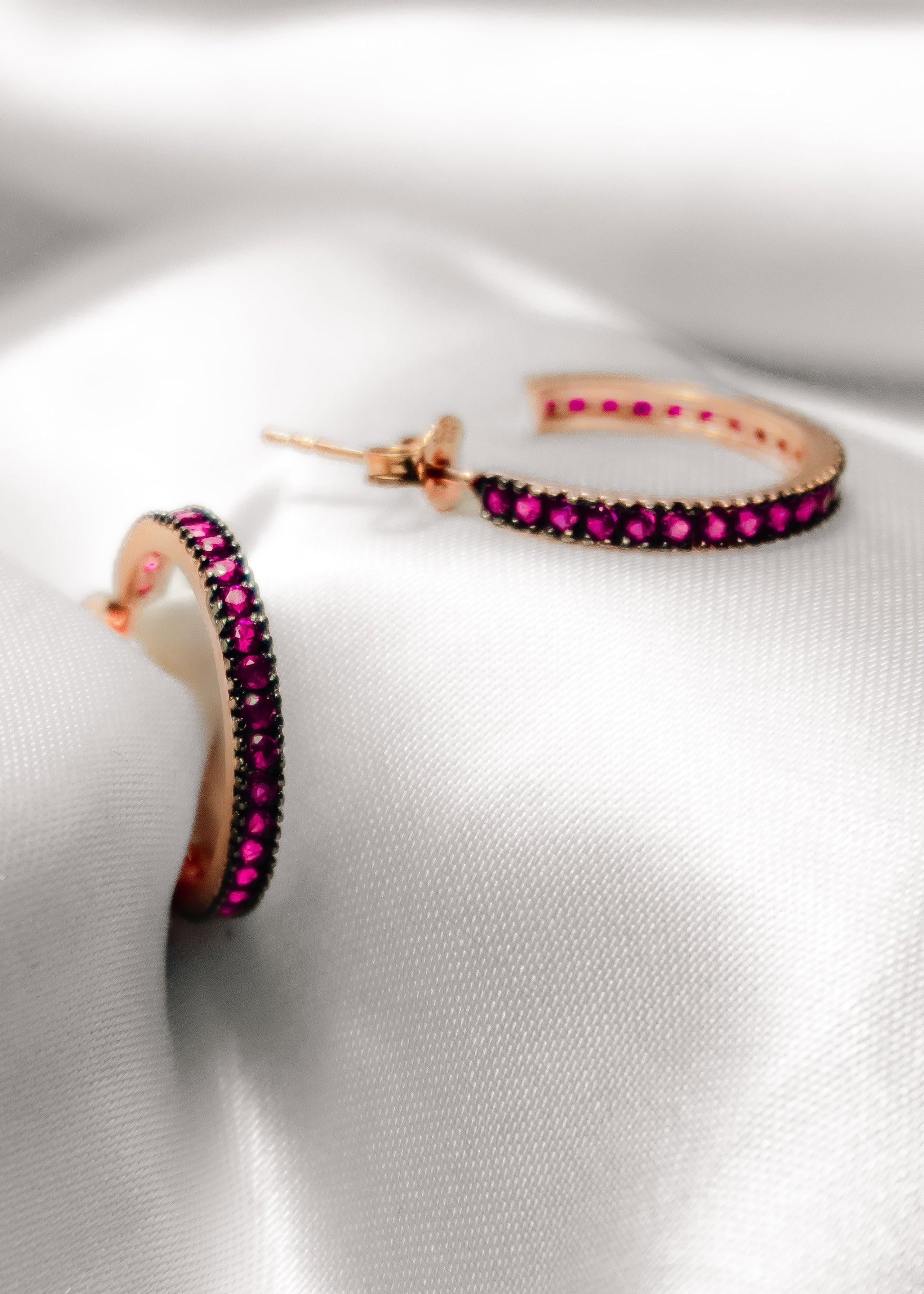 · Petite hoop earrings accented with vibrant ruby-toned pavé stones