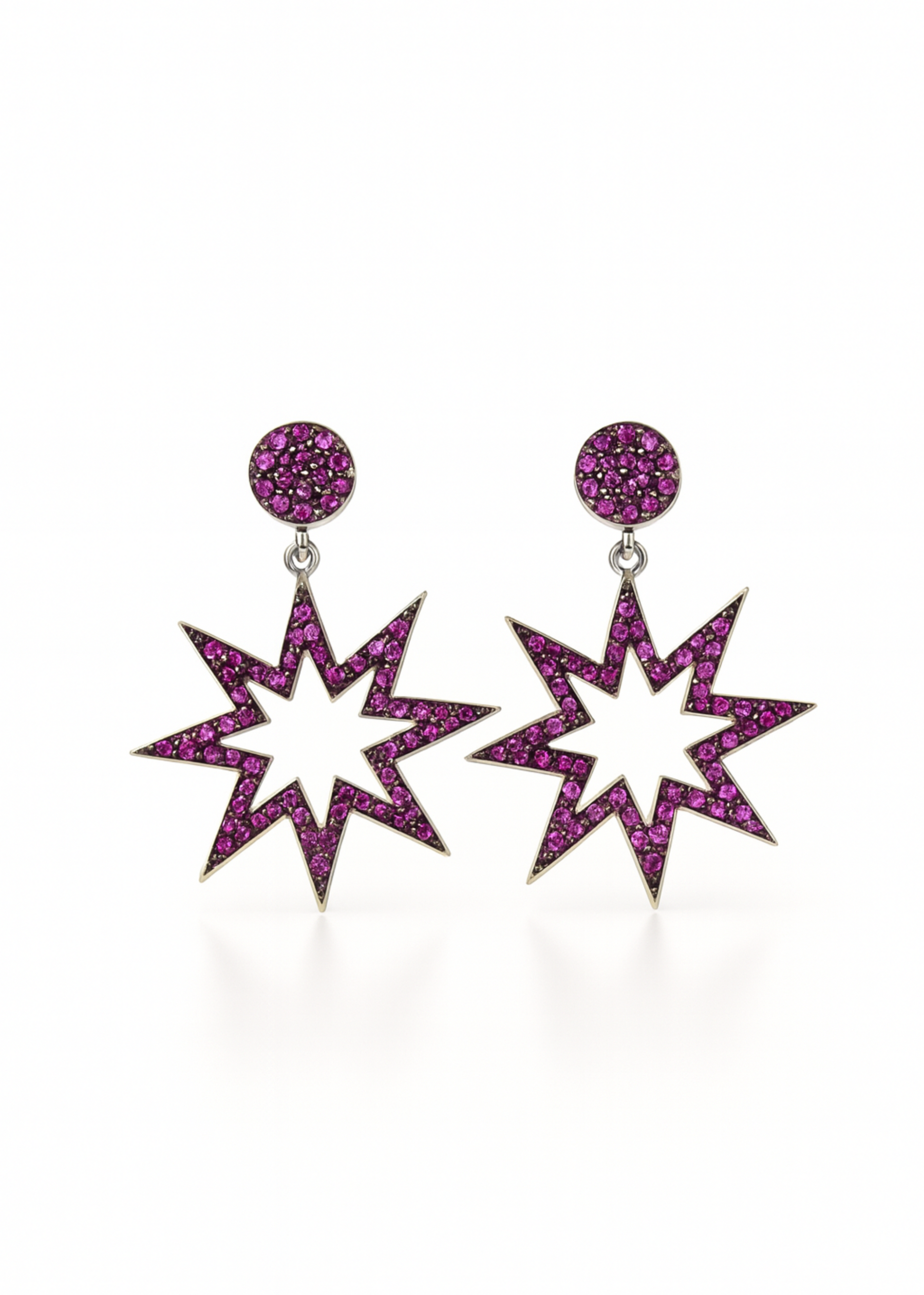 • Bold starburst silhouette paved with vibrant fuchsia micro-zircons