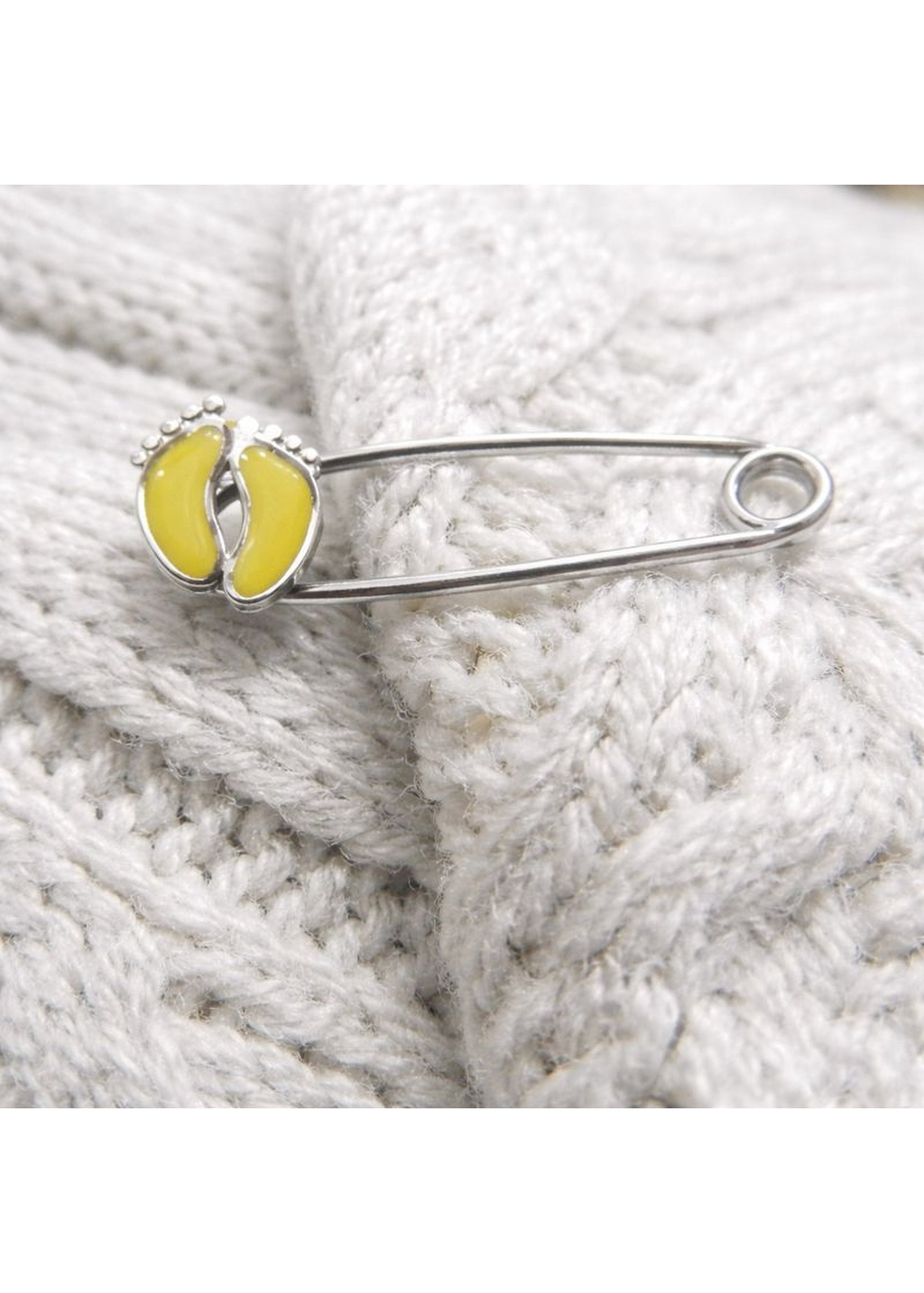Inspired by the delicate beauty of newborn footprints, this charming safety pin features a sweet baby feet motif, symbolizing love, protection, and new beginnings. A meaningful keepsake designed to add a gentle, sentimental touch to baby essentials.