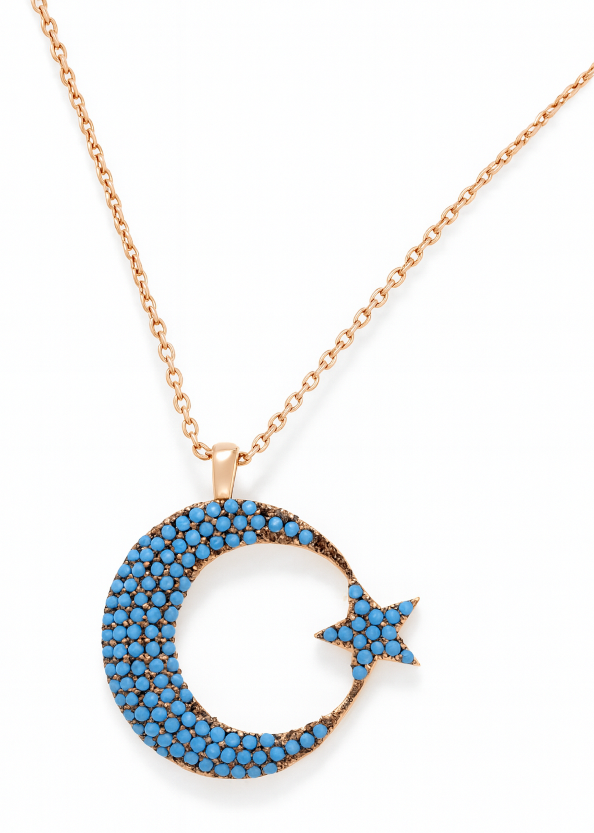 • Crescent and star motif adorned with vivid turquoise stones