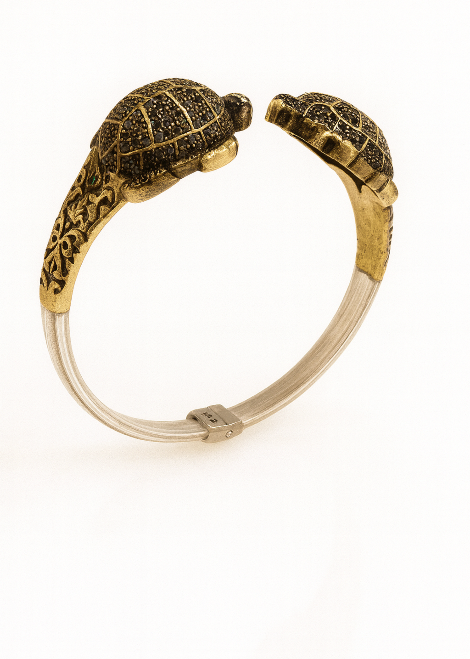 Inspired by the timeless symbolism of endurance and wisdom, the Twin Turtles Bangle celebrates patience, protection, and harmony — virtues embodied by the turtle in ancient mythology.