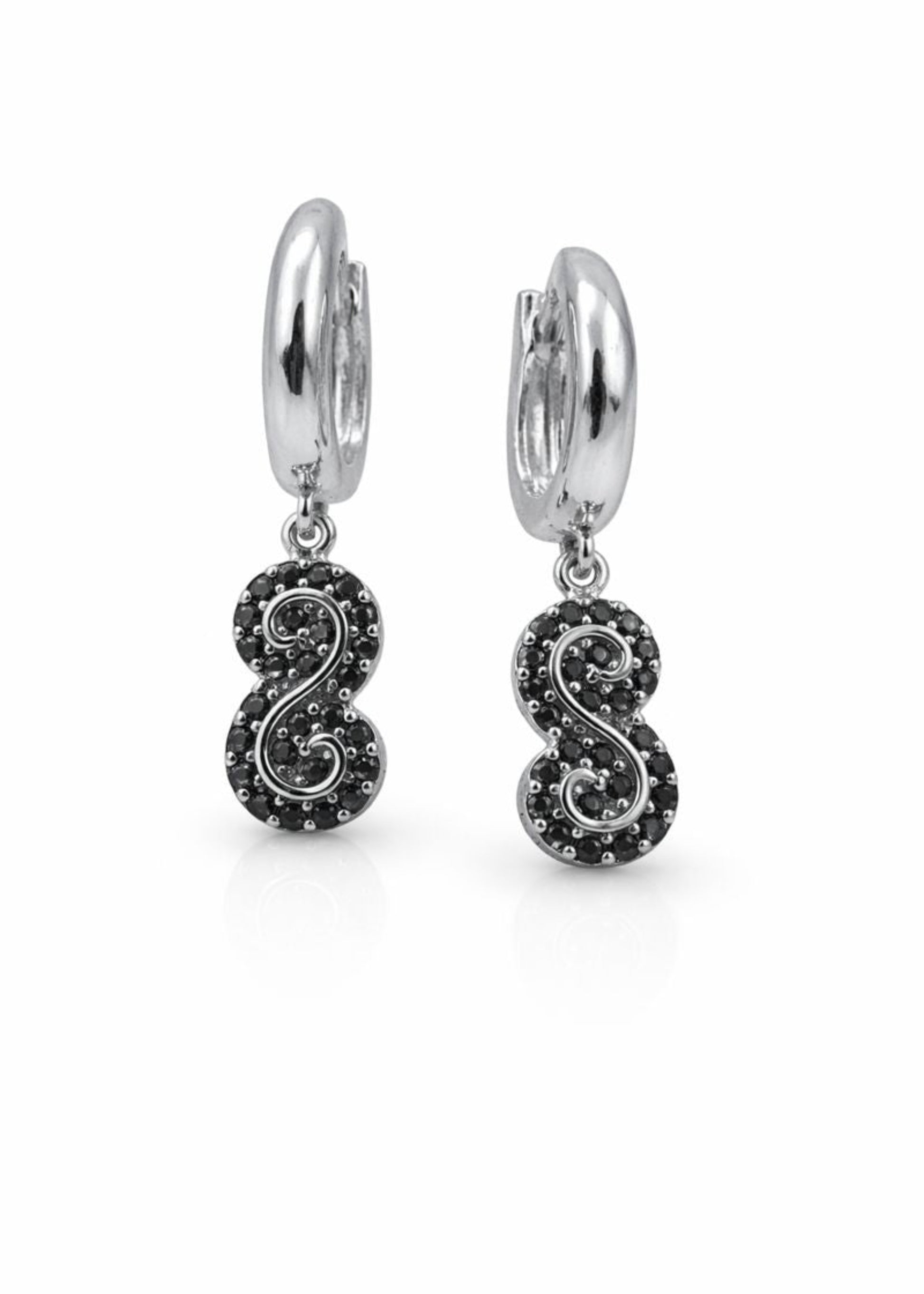 The Velis Drop are inspired by the elegance of flowing lines and classic ornamentation. The sculpted S-shaped motif, accented with dark pavé stones, creates a sense of movement and understated drama. Suspended from polished huggie hoops, these earrings blend timeless design with a contemporary edge.
